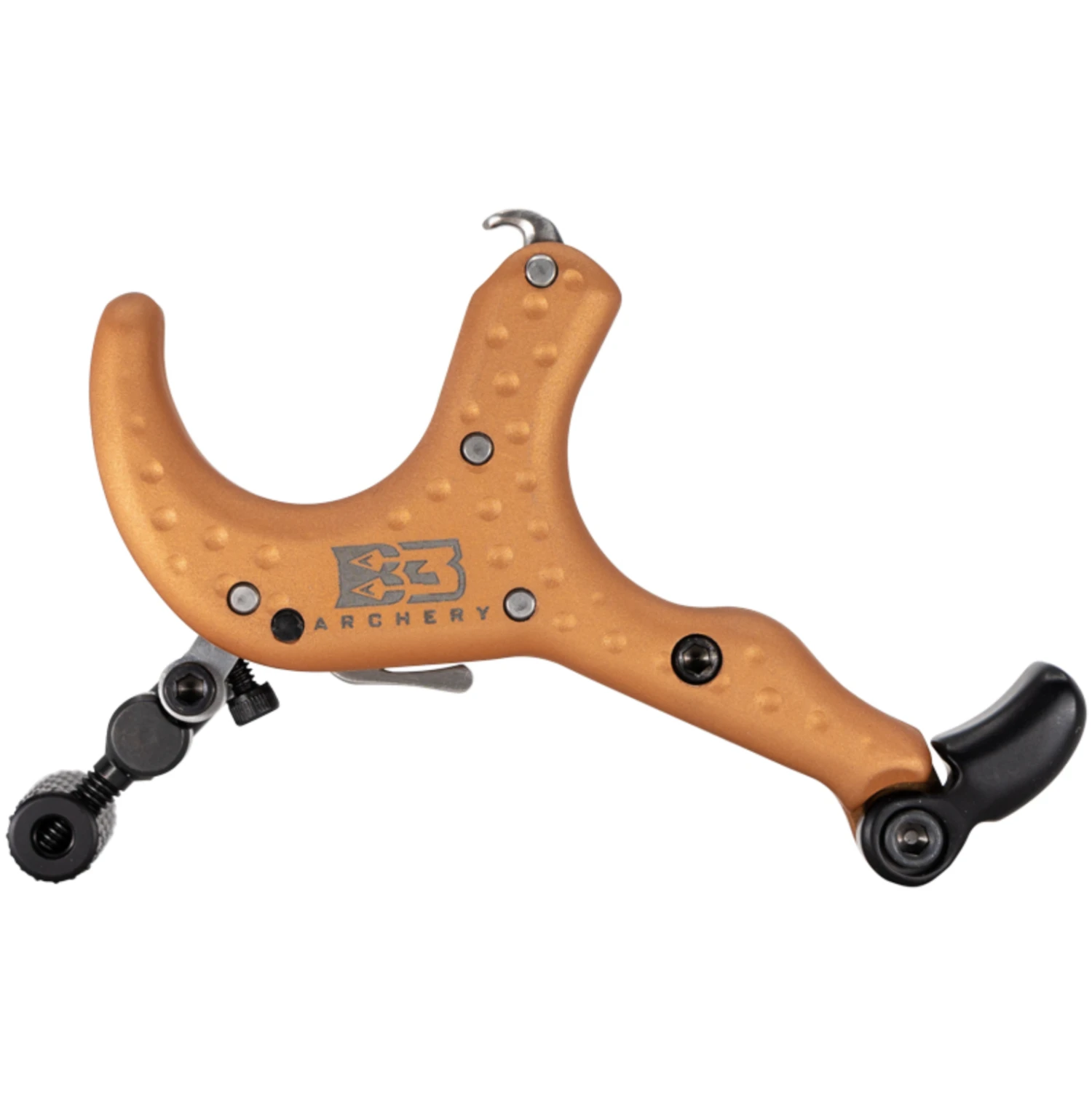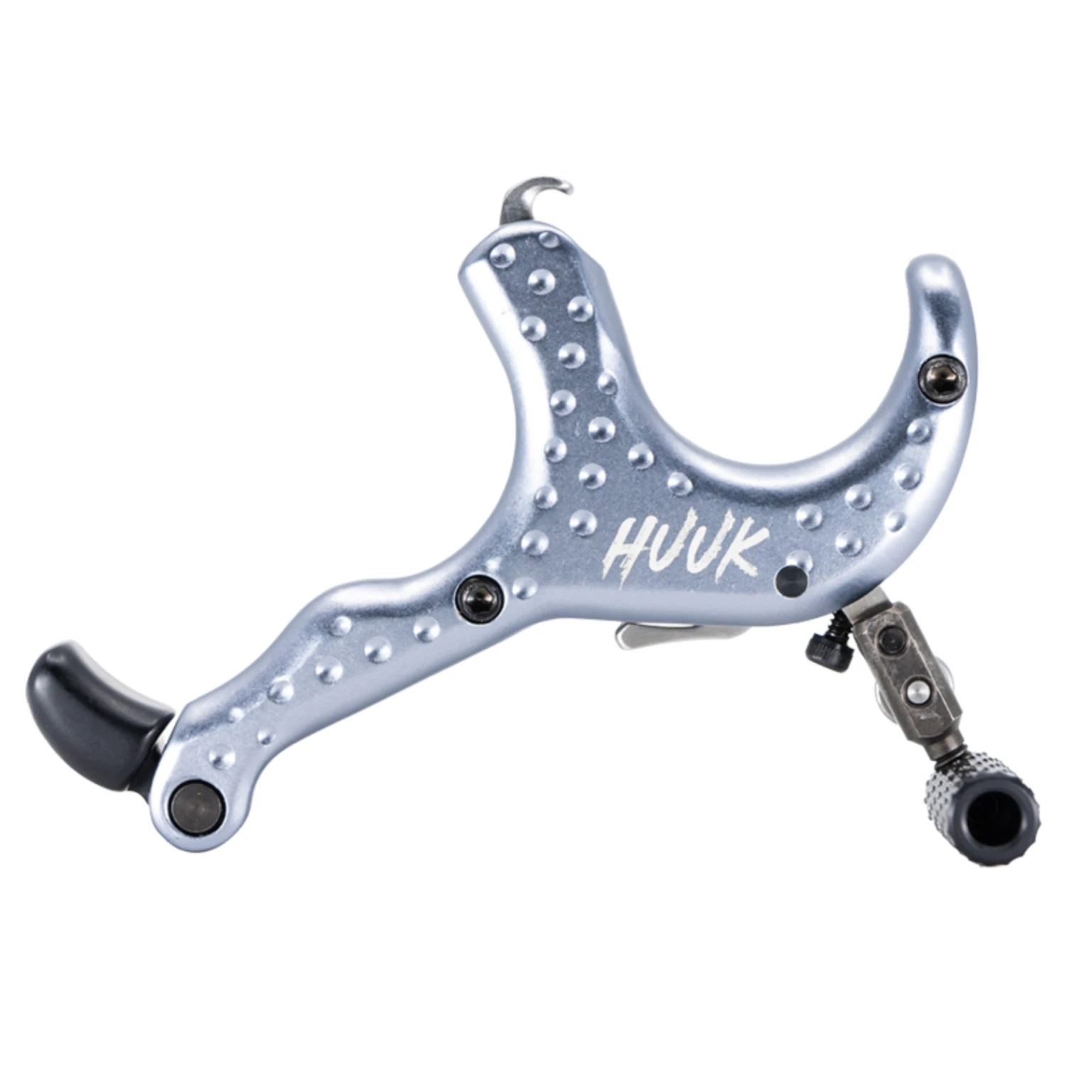 The Huuk is an open hook multi-sear thumb button release. The handle is a fully radiused two-piece patented system which allows you to rotate the finger attachments for a custom fit. Other features include an optional wrist strap connection, fully adjustable thumb post position, as well as travel and tension adjustments. The Huuk’s design includes a base system that holds the sears in place, producing the best performing open hook thumb trigger. Watch the video below for more information.