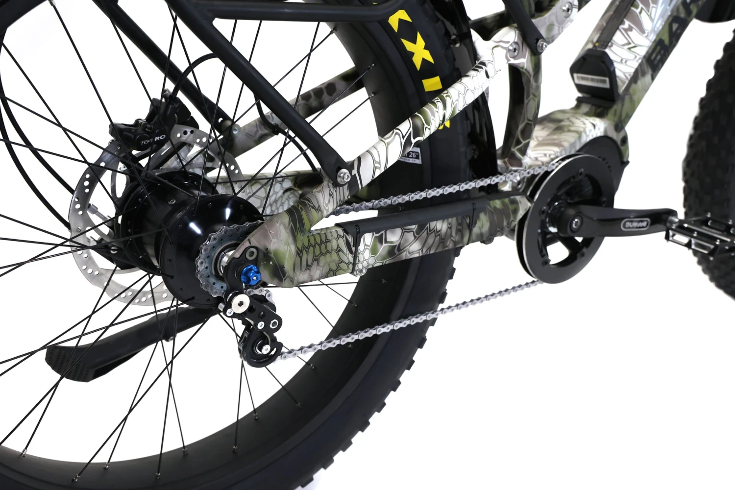 The full-suspension Storm Jäger features the unparalleled power and performance of Bafangs ULTRA mid-drive motor. With the diesel engine of mid-drive motors, the rear suspension of the Storm Jäger has to be just as strong. The Rockshox Monarch Rear suspension gives this bike the ability to handle the torque and power of the Ultra motor without causing the frame to flex under intense loads.