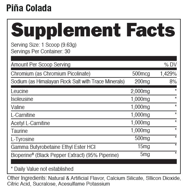 From there, we added in GBB (Gamma-butyrobetane HCL). GBB has seen an increase in popularity over the years due to its powerful fat loss properties when combined with exercise.* One such property is that GBB is considered a “sweat amplifier.”* In other words, bring a change of shirt when you take RACKED, because your fat will be crying as you melt it away.*