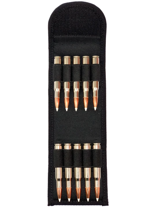 Unsatisfied with the available options, we set out to design our own. It features a slim profile and fold-up design that reduces bulging and protects soft and polymer-tipped bullets. Uniquely designed for large calibers, it comfortably fits ten rounds from .223 to .300 Weatherby Magnum.Â