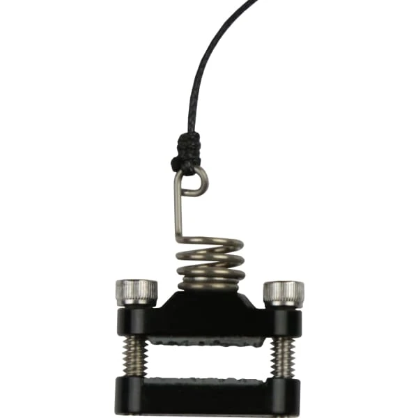 This clamp is best served on limbs that range in width from 0.625” to 0.5”. This limb clamp was specifically designed for the narrower split limb compound bows and can be used on single limb bows in some instances. This low profile 5/8” single limb clamp fits perfectly with room to spare. With the dual bracket and screws, even pressure is applied through the clamp system. The dampening coil prevents the cord from stretching, acts as a shock absorber when the shot is fired and manages the launcher rebound. The dampening coil is mounted to the lower clamp via a separate mounting screw. Couple this with a protective sticky tape and the clamp will not damage the finish of your limb or slide. This clamp works with the VersaRest as well as other manufacturers’ limb actuated style rests.