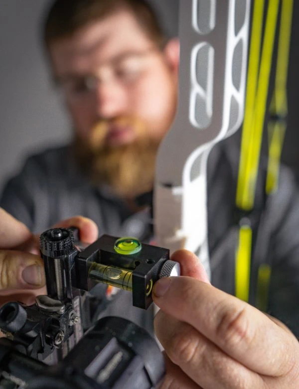 - Easily level your bow in the vise with the turret (circular) level. This allows for easy X and Y adjustment without the need to adjust the level.