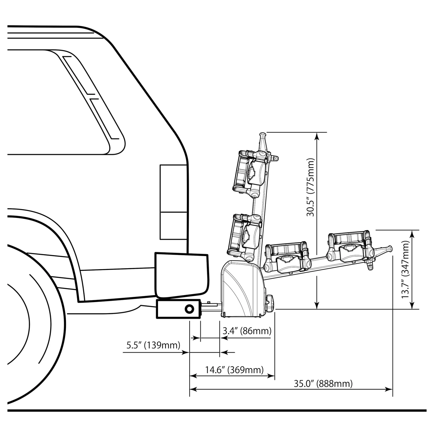 - E-bike capability (Each tray carry up to 60 lbs.)