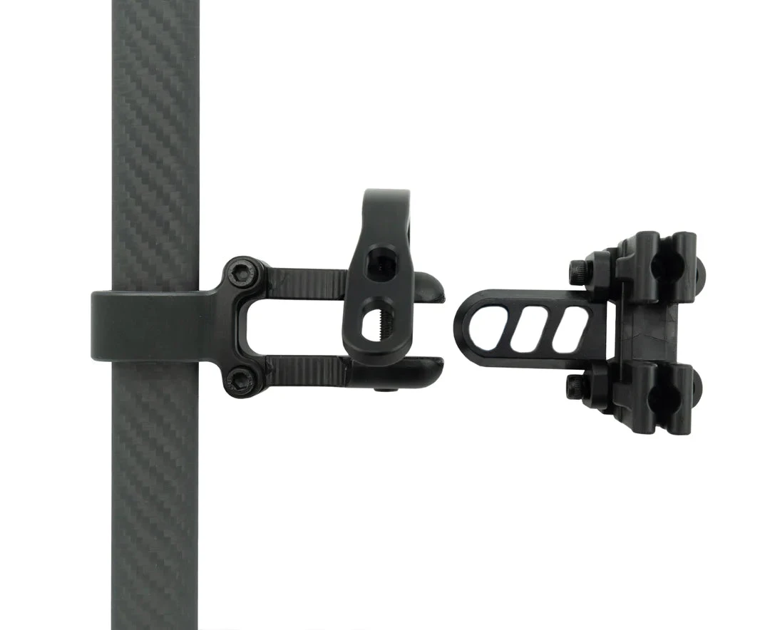 Simply put, the Checkmate Quiver system is the most advanced and stealthiest quiver on the market. We’ve loaded it with features that every bowhunter will appreciate, starting with a super lightweight build, using high modulus carbon and machined aluminum for the tightest tolerances and solid performance. The new Grip & Go arrow retention allows for fast rear arrow deployment for both right-handed and left-handed archers, and works with all arrow diameters. The Checkmate’s hood is engineered in an arch pattern that reduces the quiver’s overall surface area when loaded with arrows and minimizes wind drift while attached. The Blade Locker foam brings innovation in material, cut, and depth – designed to silence all types of broadheads while in the quiver. The Checkmate can hang anywhere, especially in a tree stand, using the sleek and silent retractable hood hook. Our innovative quad-adjust system provides perfect positioning of your quiver while maintaining the tightest fit and balance. Finally, the Checkmate features a single, speed-load arrow gripper located on the bow mount bracket, so you always have a follow up shot available, even without the quiver on your bow. Come experience a quiver system like no other, the new Nock On Checkmate.