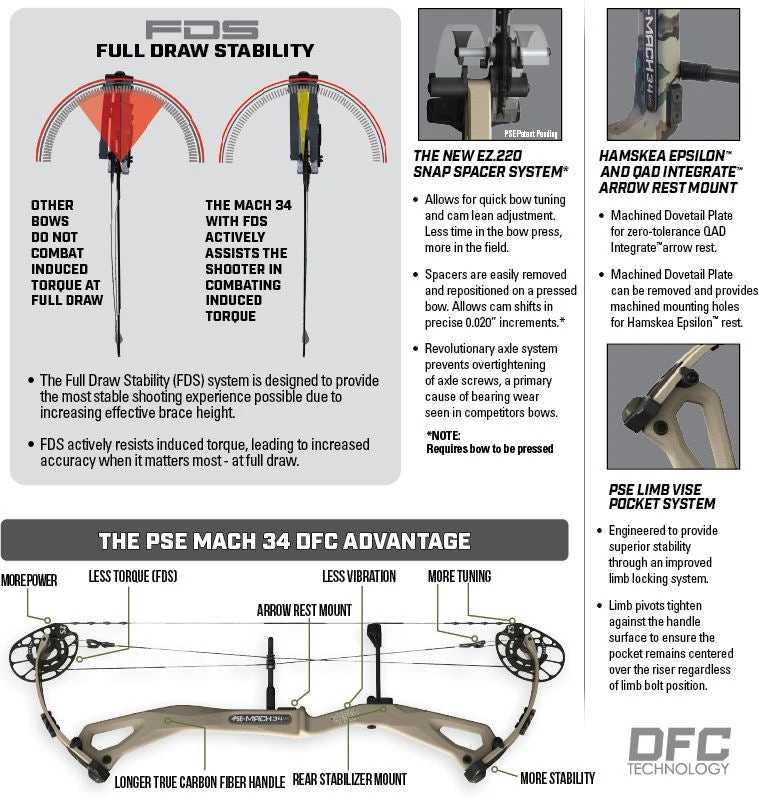 That’s why the 2023 PSE Mach 34 has been built on PSE’s Full Draw Stability Technology, providing the most stable shooting experience in archery thanks to its dynamic brace height.