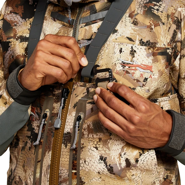High Handwarmer Pockets: High handwarmer pockets are positioned to shed water away from the pocket and provide easy access to keep hands warm and ready.