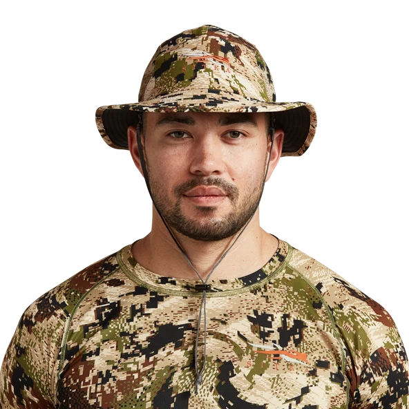 The SITKA Sun Hat is ideal for long hours behind glass. The brim has a dark underside to limit eye strain in bright conditions, and a soft, contour that won’t interfere with bow strings.