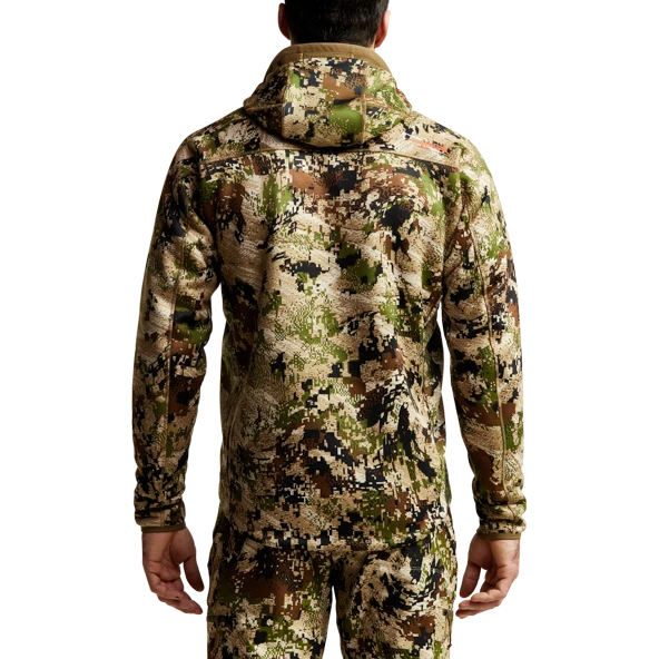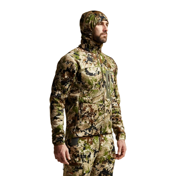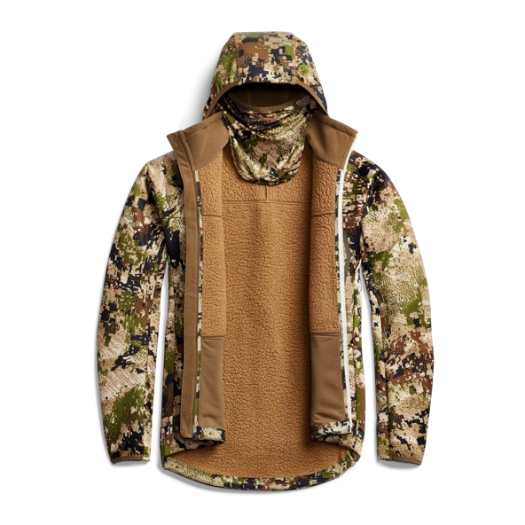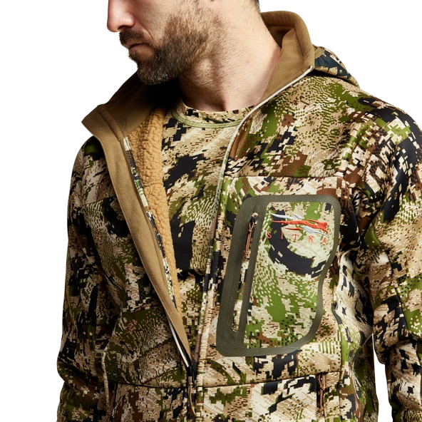 We had comfort and versatility at the top of mind when designing the Traverse Hoody, giving it a high-loft Berber fleece interior for a soft feel that delivers plenty of warmth and mapping in lighter weight fleece panels at the sides and underarms for streamlined fit. An ultra-quiet polyester knit face with durable water repellent finish sheds light precipitation. Fabrics used in this hoody are constructed from recycled materials.