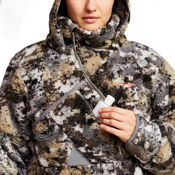The Fanatic Jacket is the total package for ultra-quiet warmth, utilizing the most advanced sound-suppressing fabric in the hunting world. Built with deadly quiet high-loft Berber fleece face, an ultra-quiet GORE-TEX INFINIUM™ with WINDSTOPPER® Technology barrier for 100% windproof warmth and PrimaLoft® Silver Hi-Loft Ultra insulation for the coldest days in the stand. Body-mapped construction optimizes the draw cycle for bowstring clearance along with a reduction in bulk in the draw arm to minimize noise and keep your arrow flight true. The Constant-Connect SITKA® Safety Harness Port eliminates the need to disconnect from your harness when adding or subtracting layers. Designed for women, by women, the Fanatic Jacket has specialized features including Sitka Ground Shield in the back panel for even more protection when leaning against a tree.