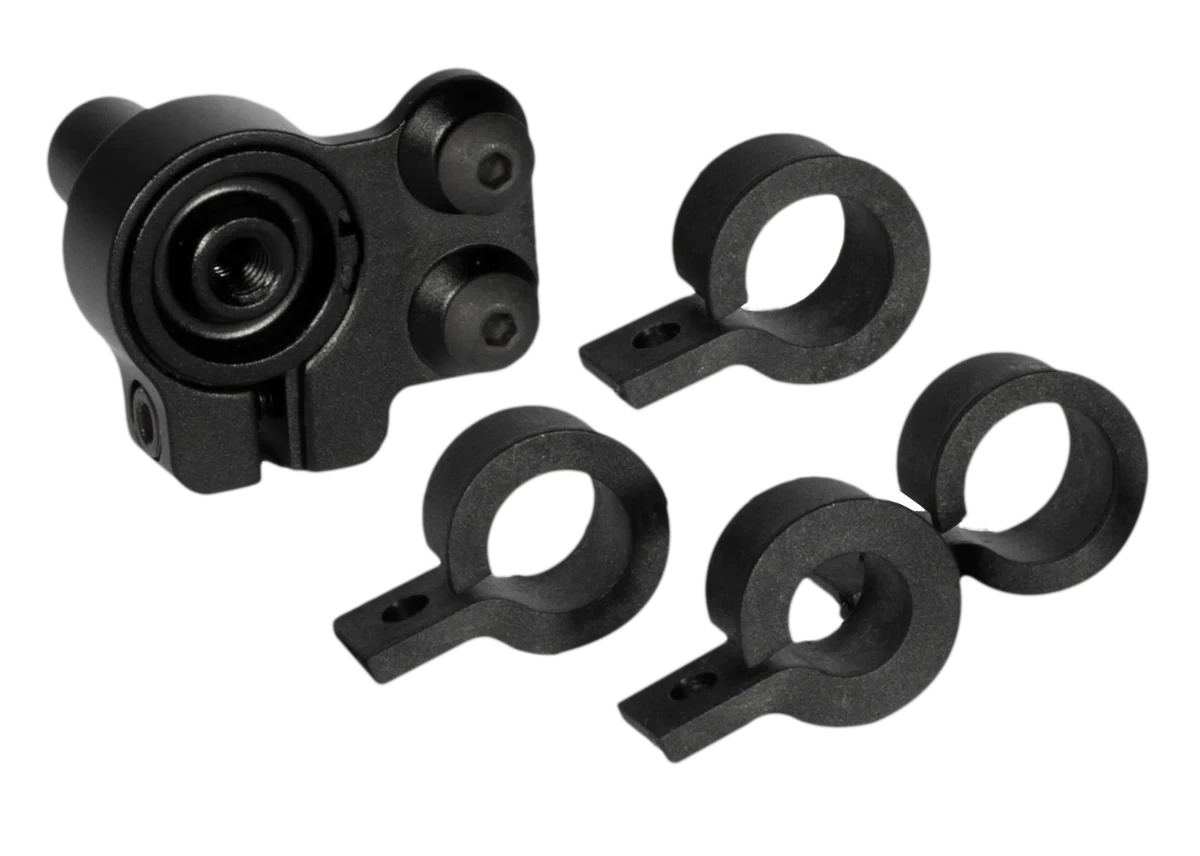 Archery’s most technologically advanced sight is now compatible with your favorite scope! The all-new Universal Scope Mounting Kit allows archers to match their scope of choice with the Trophy Ridge Digital React One Pin, Digital React Trio Pro, Digital React Mathews Bridge Lock, React One Pro, React Trio Pro, and React Alpha. This kit includes (1) aluminum universal mounting bracket, (4) various sized nylon bushings (0.49, 0.45, 0.433, 0.375) that fit the mounting face on most of today’s popular archery scopes, (1) aluminum threaded stud sleeve 10/32″, (1) adjusting screw and (2) mounting screws.